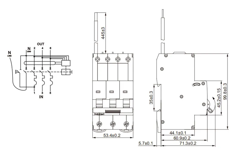 It occupies 3 modules (54mm) in the power distribution box, saving more space compared with the separate installation of “RCD+MCB”.