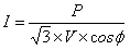 (P: Power; V: Line voltage of 400V; cosφ: Power factor, usually taken as 0.8 to 0.9)