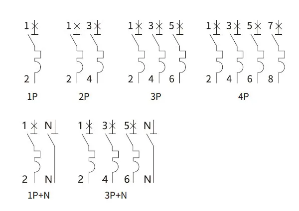 | No.of poles | 1P,1P+N,2P,3P,3P+N,4P |