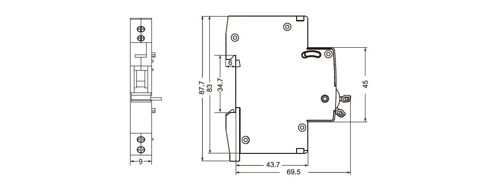 | Terminal size top/bottom for cable | 2.5mm² 18-14AWG | |