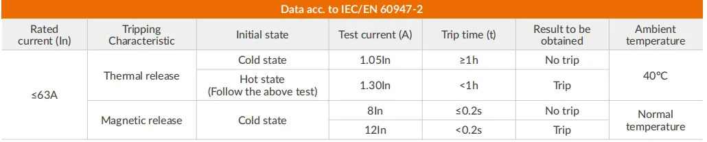 | Thermal release characteristic | (1.13-1.45) x In |