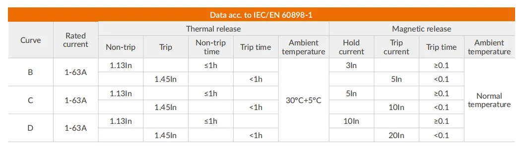 | Magnetic release characteristic | B:(3-5) x In, C:(5-10) x In, D:(10-20) x In |