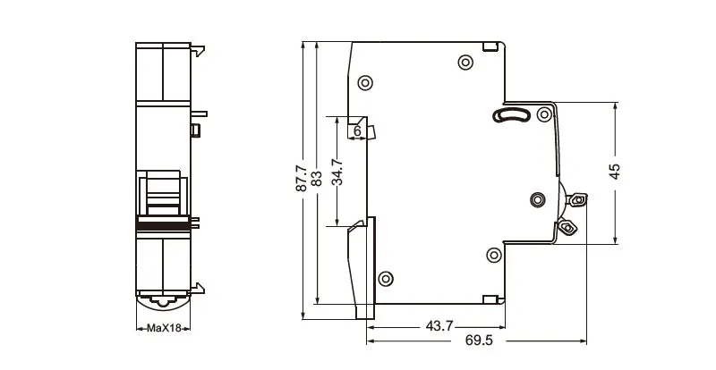 | Terminal size top/bottom for cable | 2.5mm² 18-14AWG |